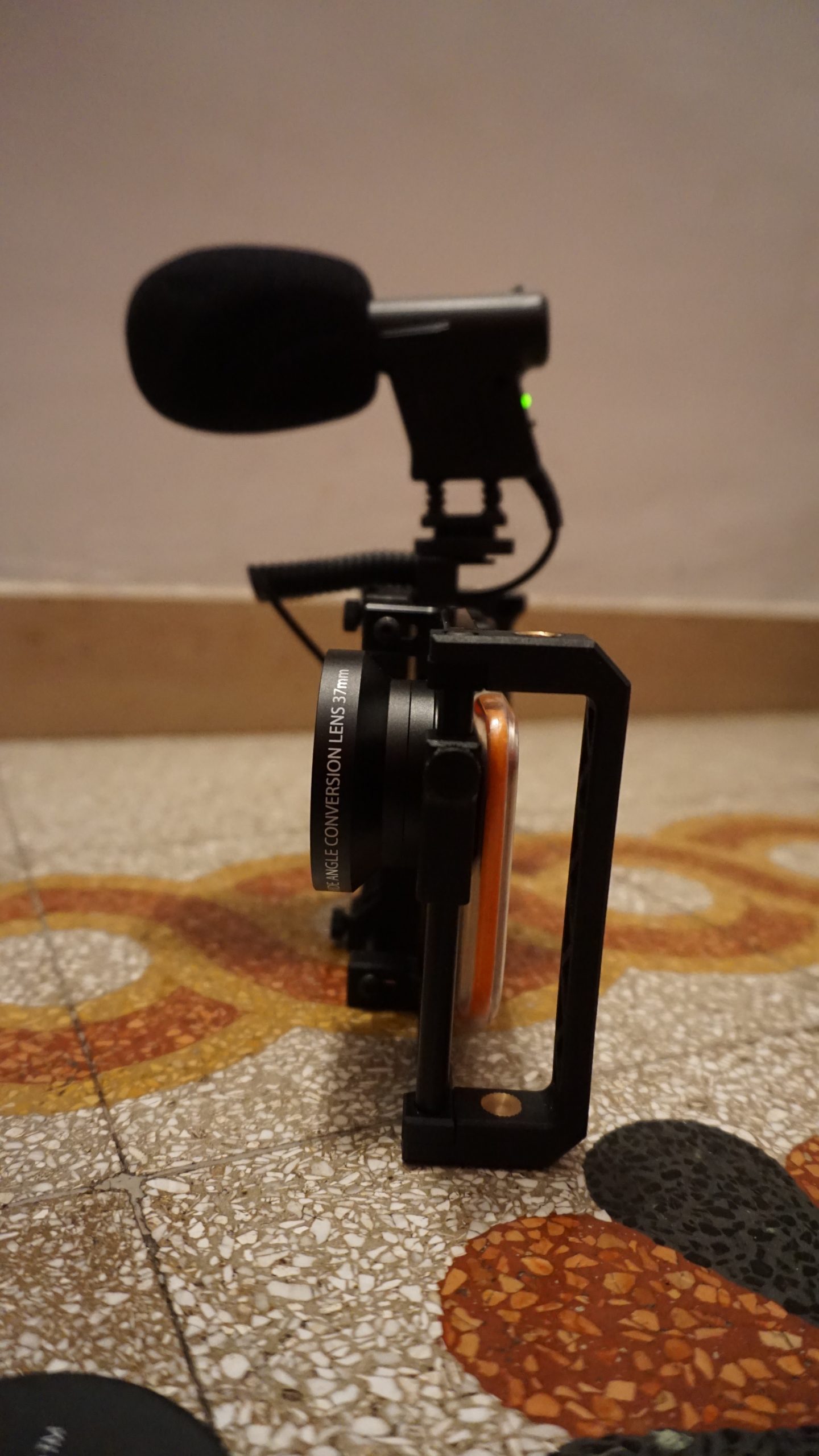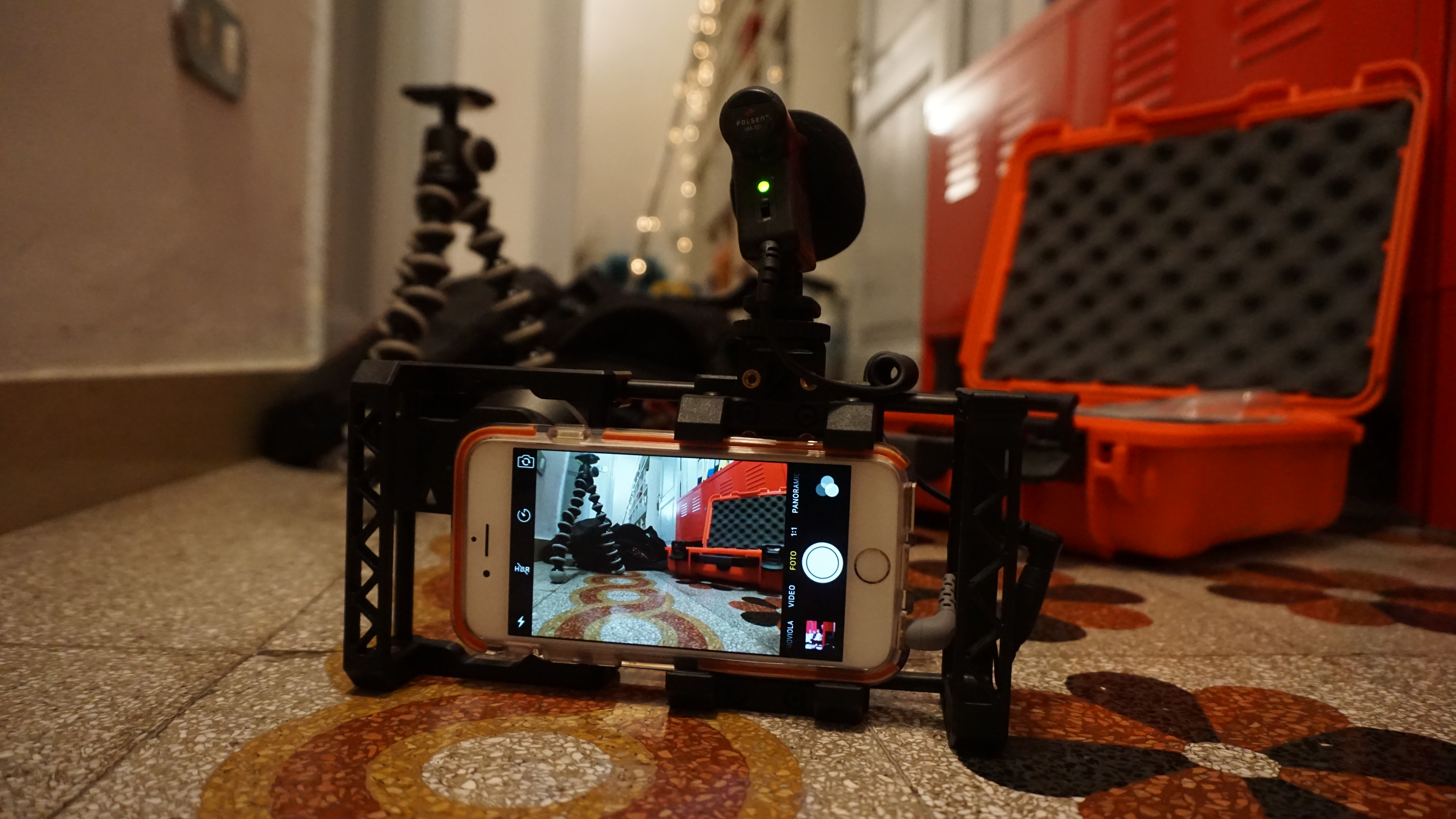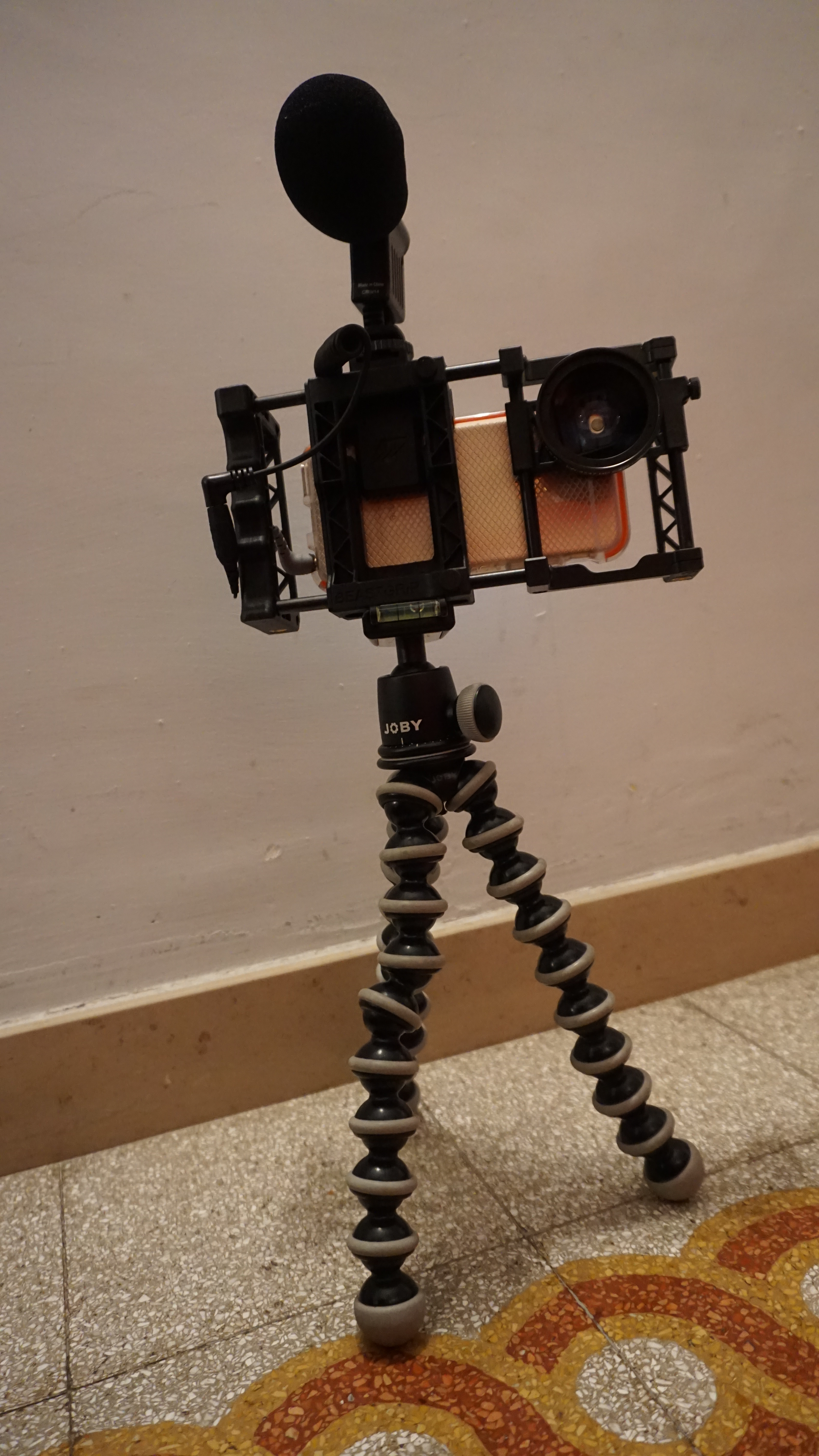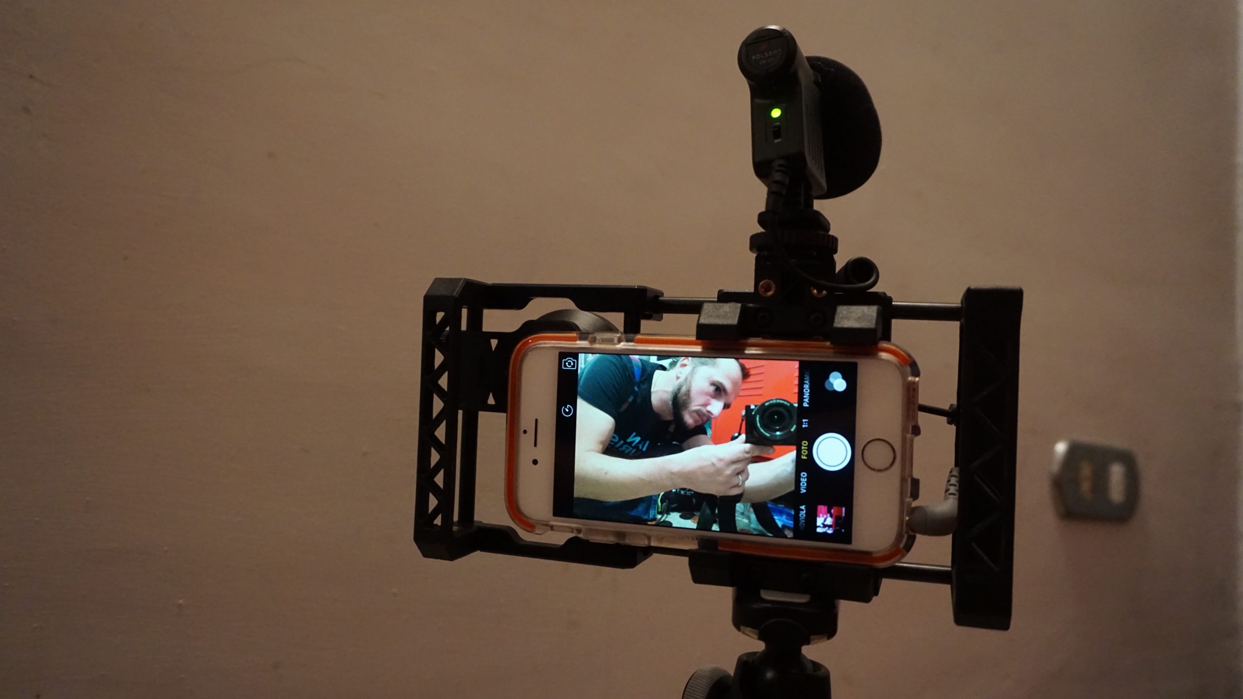 L’anno scorso, sono stato uno dei 546 finanziatori del progetto BeastGrip (oggi è finalmente disponibile per tutti ), un “rig” che consente di “montare” l’iphone (o un altro smartphone) per poterlo impugnare e gestire in maniera bilanciata, poterlo accoppiare a microfoni panoramici esterni (nella foto lo vedete con un Polsen da una sessantina di dollari, più l’adattatore jack della Rode), montare su cavalletti, accoppiarlo a luci ed anche usare dei braccetti a mo’ di spallaccio.