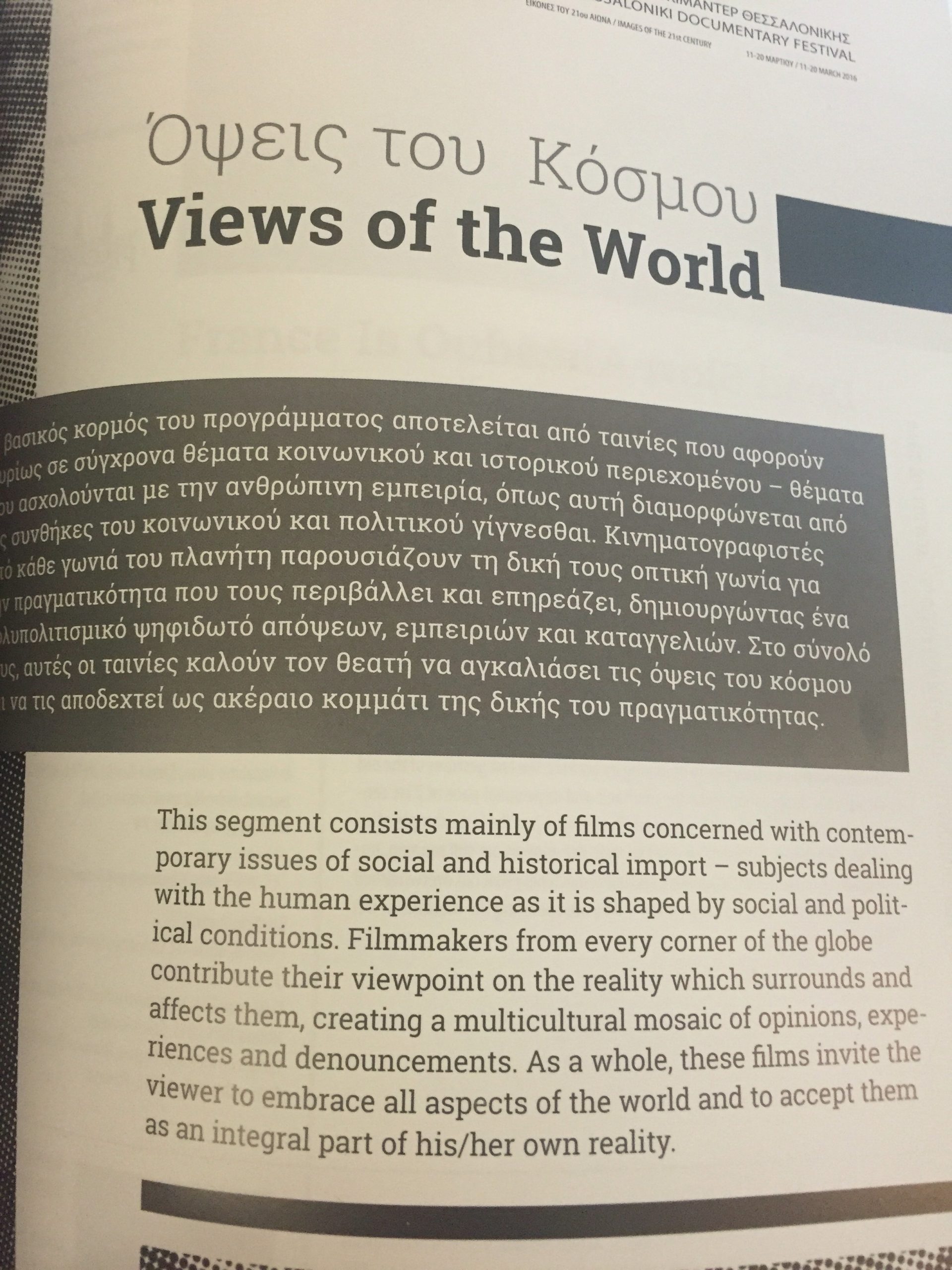 Ecco qualche immagine da una città che, grazie all’ultra-decennale festival del cinema e quello del documentario, ha strutture e spazi per il consumo culturale e che pulsa di un’energia operosa durante i giorni della manifestazione. PS: è straniante pensare che siamo solo ad un’ora di macchina da Idomeni, dove muore l’Europa