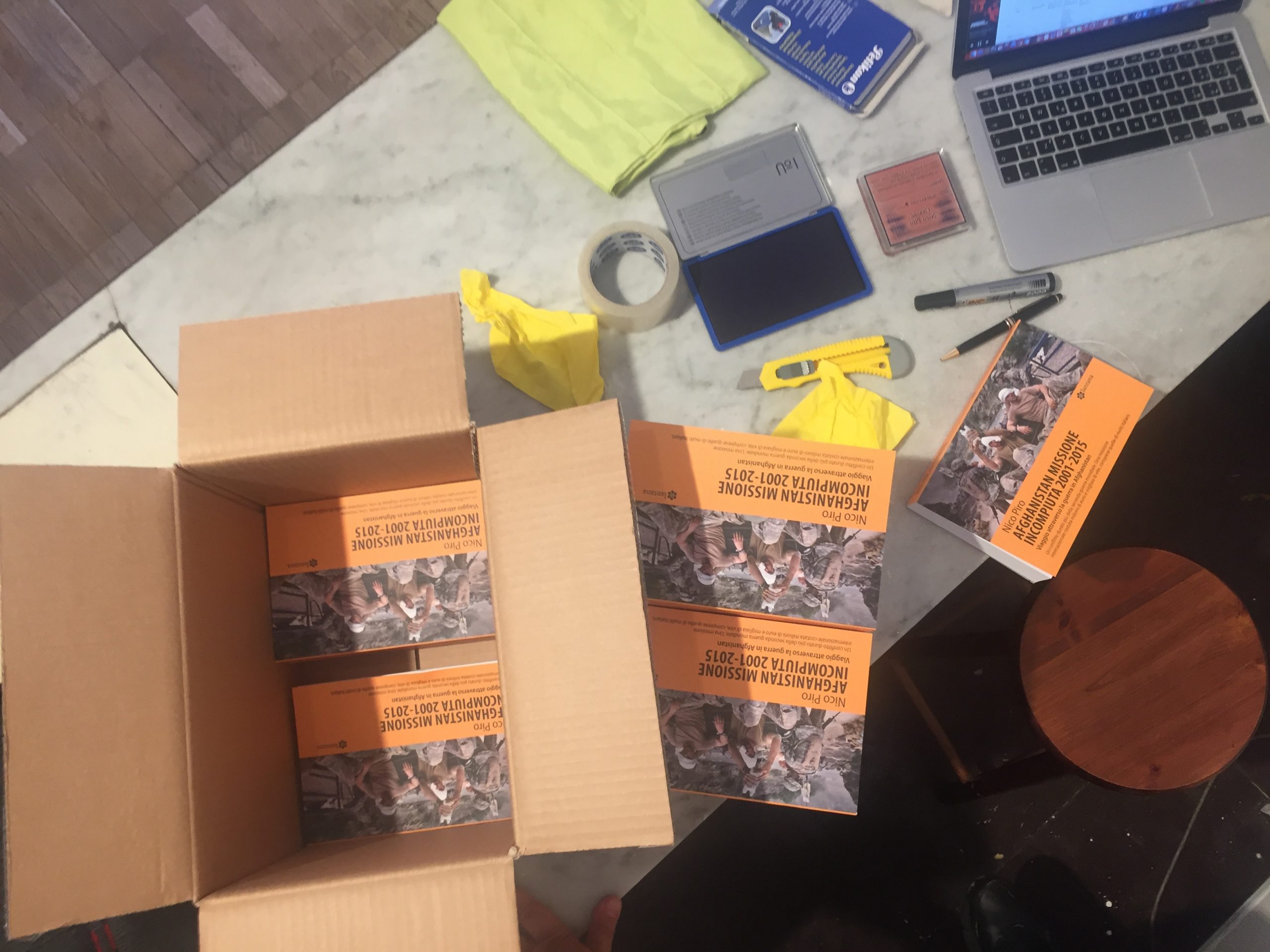 Firma dopo firma, timbro dopo timbro…le copie di “Afghanistan Missione Incompiuta” stanno lasciando la sede di Lantana Editore in via dei Fienaroli a Trasteve. I primi libri sono stati consegnati in tutta Italia già lunedì 20 giugno – dopo le consegne a mano durante il BookHappening del 16.