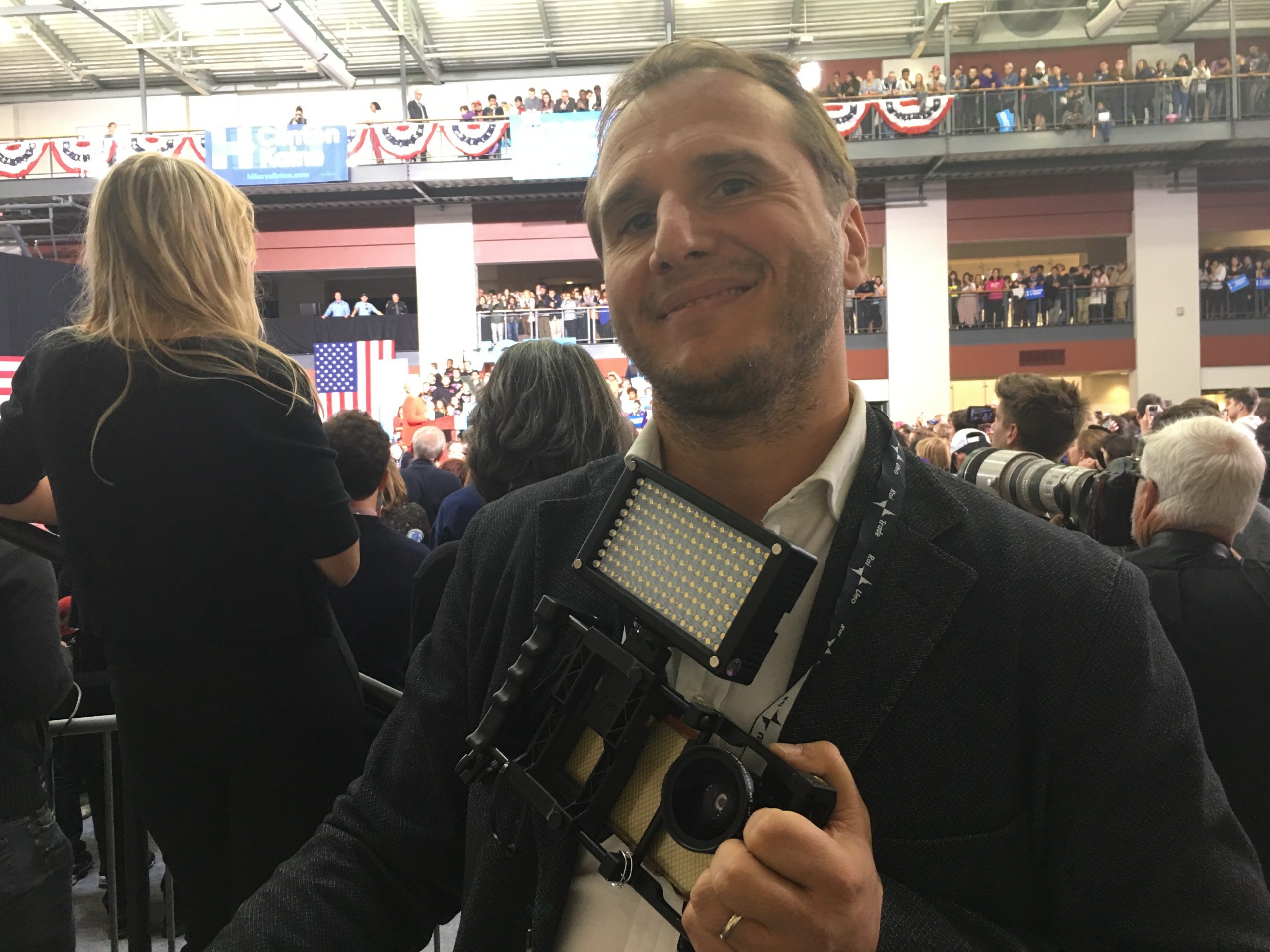Nelle foto vedete i vari “set-up” (quasi tutti basati su BeastGrip, qualcuno particolarmente creativo) oltre alla montatrice Valentina Di Mambro e il telecineoperatore Ettore Cianchi, il team del Tg3 che sta coprendo le elezioni americane.