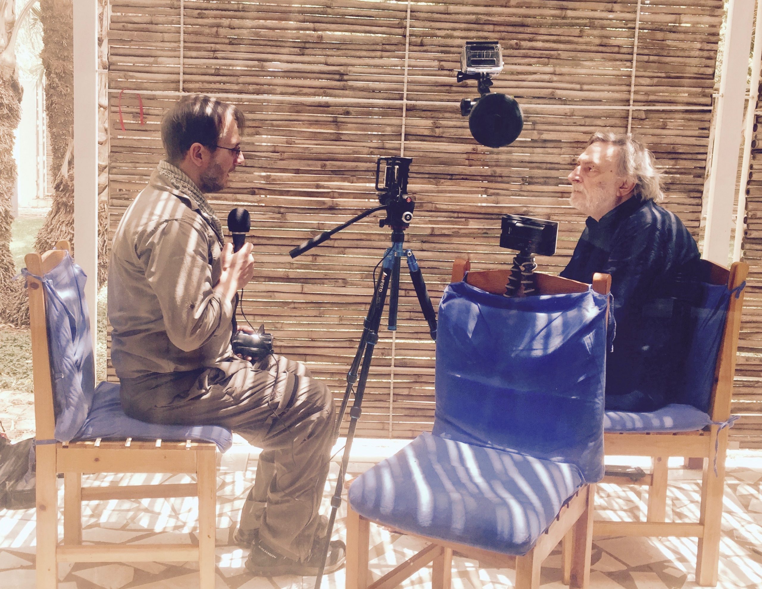 1. ANGLES l’intervista è stata girata con più camere, quella principale è un iPhone 7 gestito da FilmicPro v6, in modalità 4k. Il totale intervistato-intervistatore è preso da una GoPro Hero 4, sempre in 4k e con il profilo colore pro-tunes attivato. I dettagli (sguardo, mani, passaggi da monitor prima camera ad intervistato) sono invece girati con una palmare Panasonic, in FullHd.