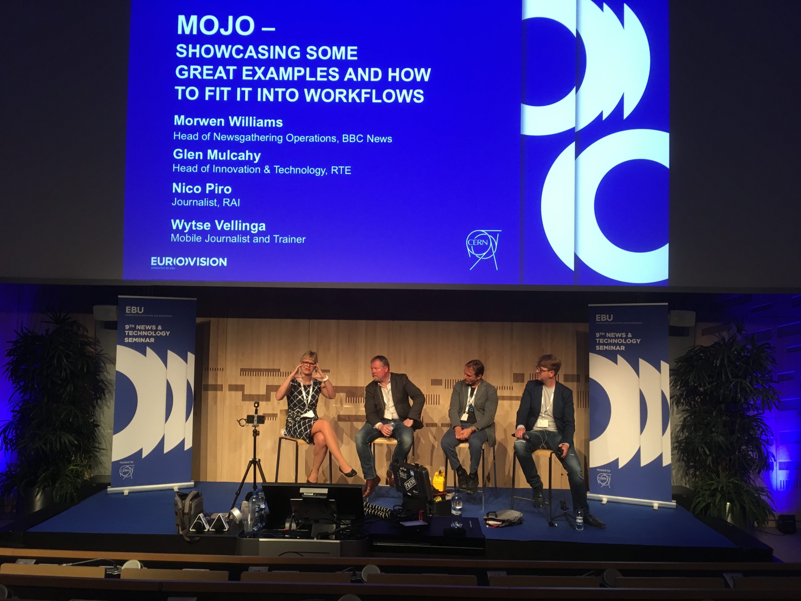 Come può il mobile journalism aiutare “il” e inserirsi “nel” flusso di lavoro delle radio-tv del servizio pubblico in Europa? E’ a questa domanda che abbiamo provato a rispondere durante la sessione sul “Mojo” della nona conferenza su tecnologia e informazione che l’European Broadcasting Union (per capirci, “Eurovisione”) ha tenuto il 3 e 4 ottobre al CERN di Ginevra. Con me c’era Glen Mulcahy della RTE (Irlanda), la leggenda vivente del Mojo europeo, e il collega olandese Wytse Vellinga. A moderare Morwen Williams, capo della produzione della BBC.