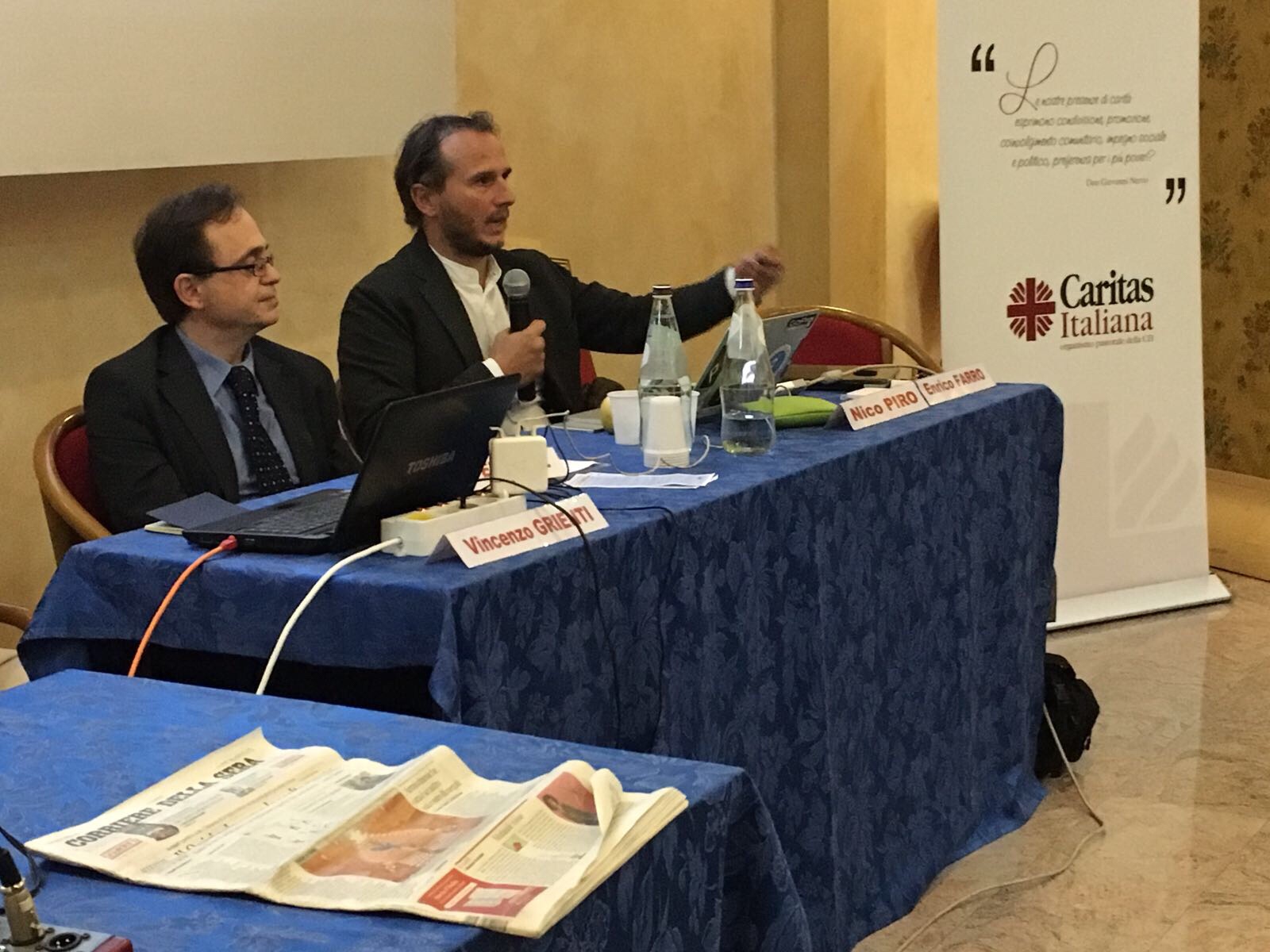 A proposito, vengo da percorsi culturalmente diversi e non faccio parte del movimento della Caritas ma sentendo parlare di pace e di difesa degli ultimi, vedendo persone ancora interessate a guardarsi intorno (temi e atteggiamenti ormai scomparsi dall’orizzonte della malandata politica italiana) ad Abano Terme mi sono sentito a casa.