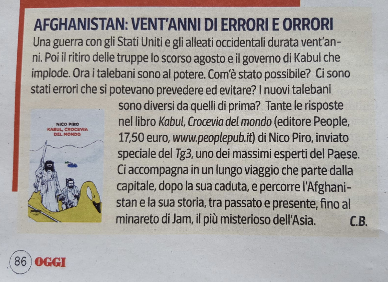 Sul primo numero dello storico settimanale “Oggi”, firmato da Carlo Verdelli, c’è spazio per una recensione di “Kabul, Crocevia del Mondo” a corredo di un pezzo di Francesca Mannocchi e Alessio Romenzi.