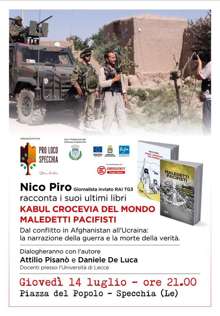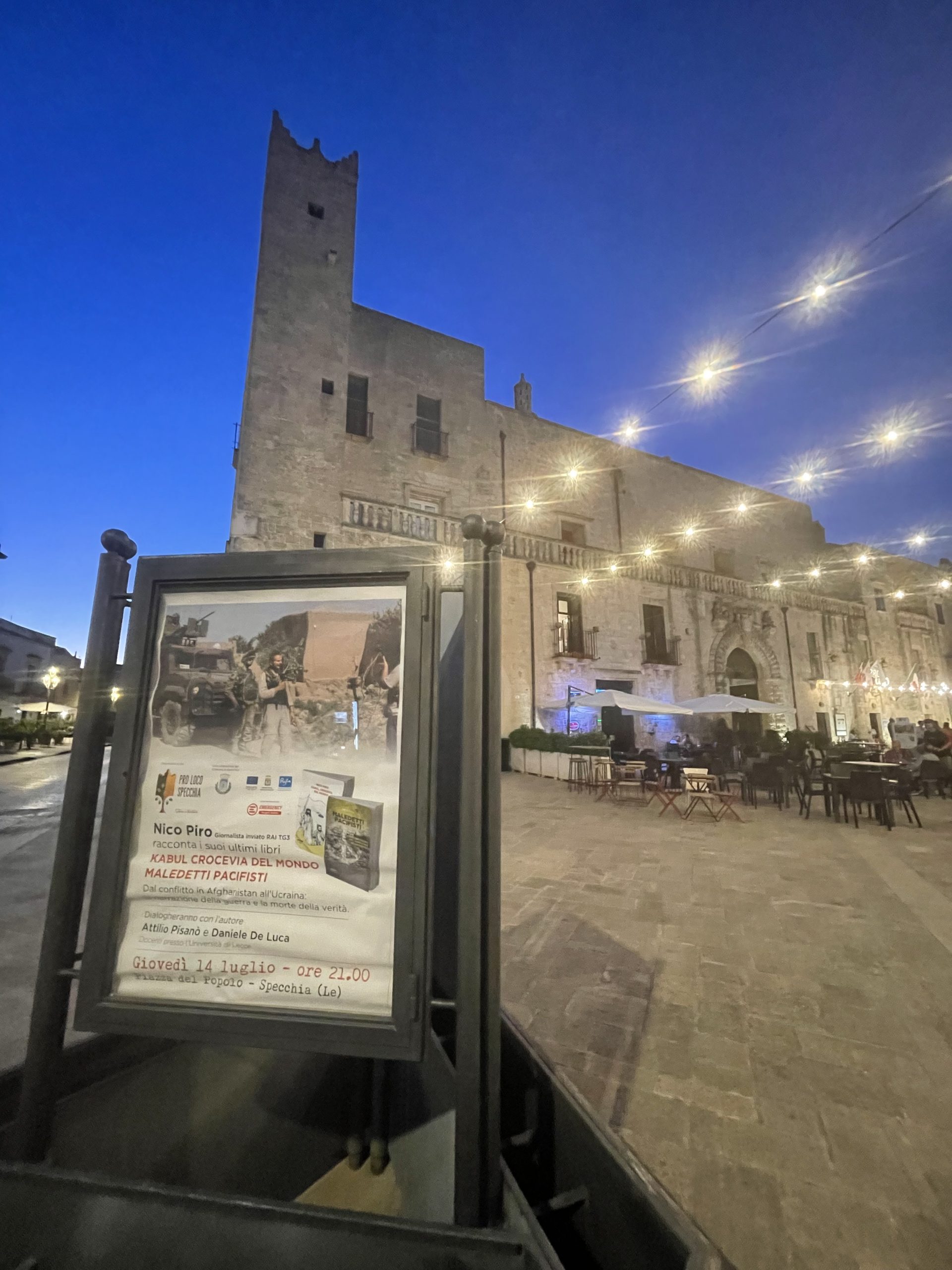 Grazie alla Pro Loco della bellissima Specchia, in provincia di Lecce, e al locale gruppo di Emergency per una serata di confronto e di ragionamento, per riprenderci il pensiero critico sulla guerra e le speranze di pace.
